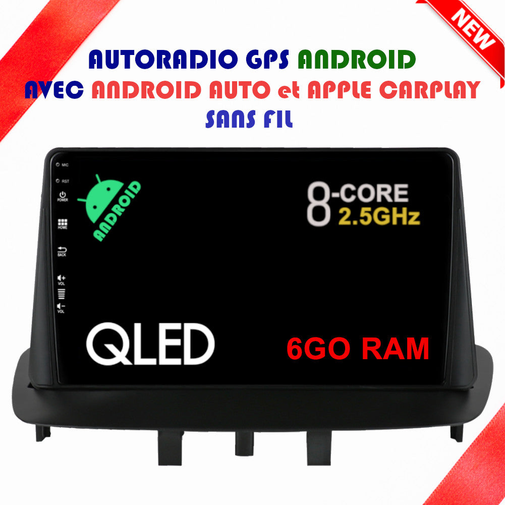 Autoradio GPS Renault Mégane 3 de 2008 à 2016 Version Android 13 avec Android Auto et Apple Carplay sans fil intégrés