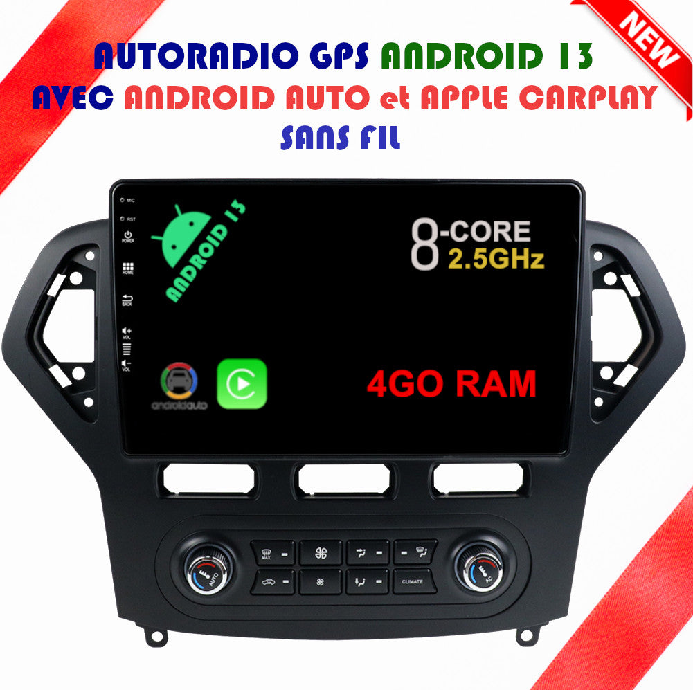 Autoradio GPS Ford MONDEO 3 Phase 1 de 2007 à 2010 Version Android 13 avec Android Auto et Apple Carplay sans fil intégrés