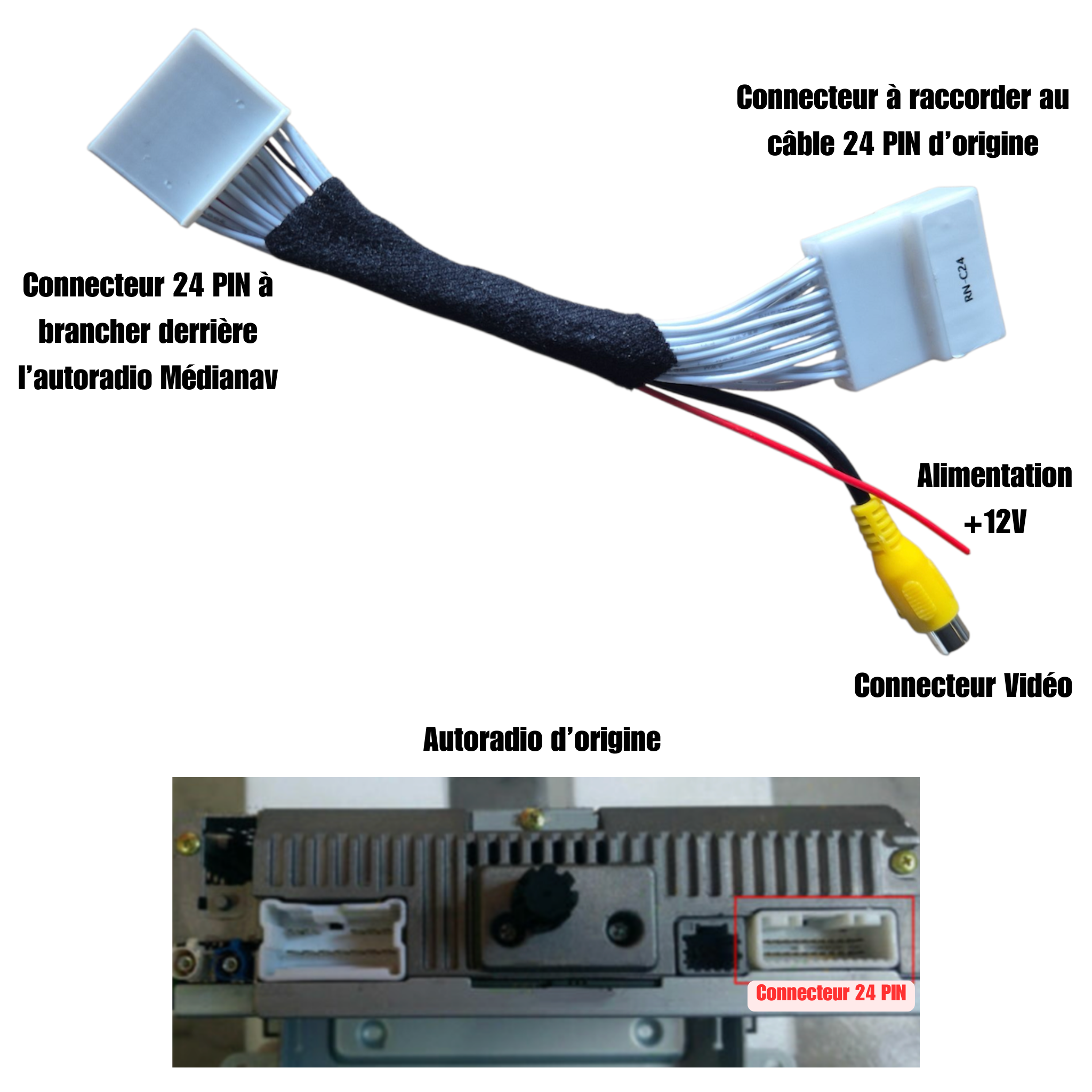Il se connecte directement sur le faisceau d’origine 24 broches de l’autoradio :