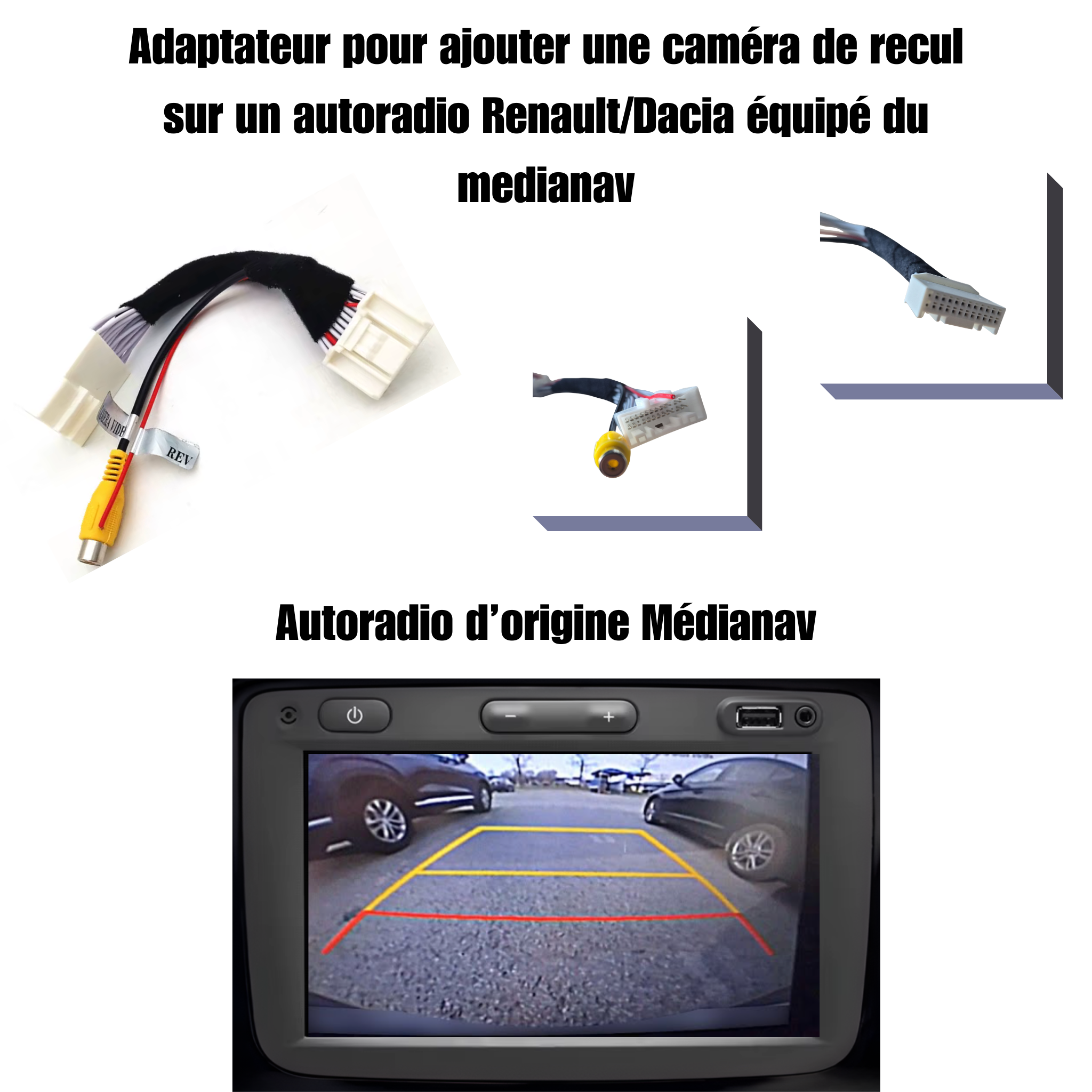 Adaptateur Caméra de Recul 24 PIN pour Renault / Dacia Compatible Autoradio d’origine MediaNav – Pour Caméra non d’origine