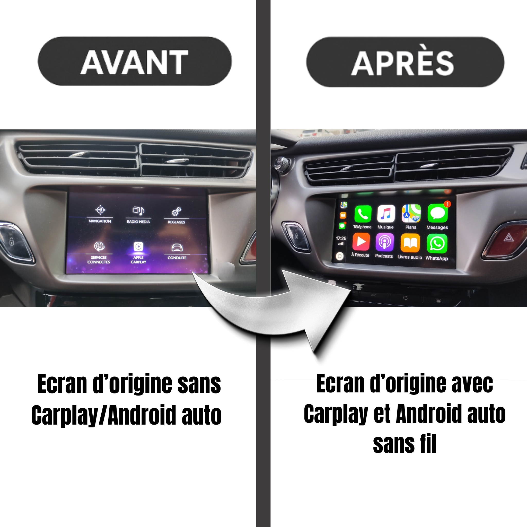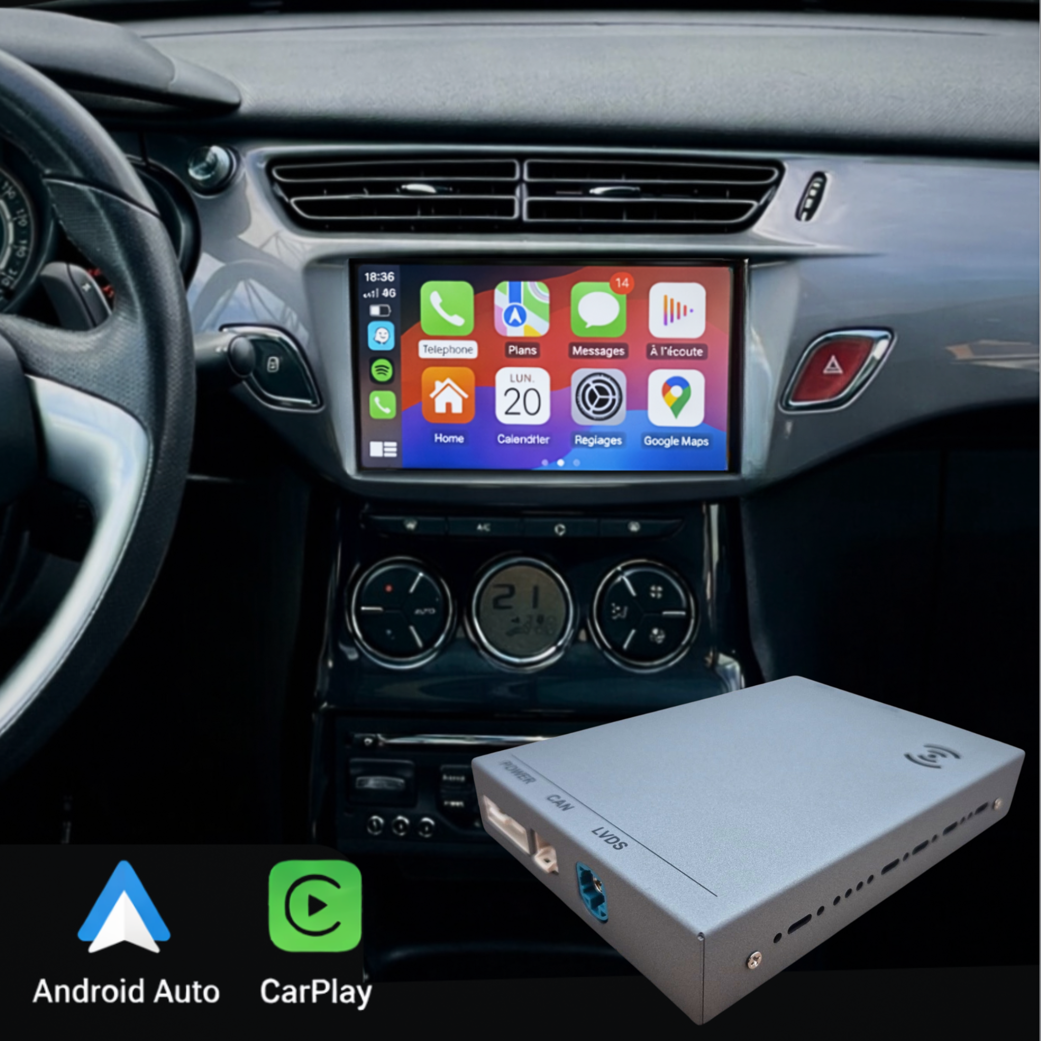 Boîtier Carplay et Android Auto pour Citroën C3 de 2013 à 2016 avec systèmes SMEG/SMEG+